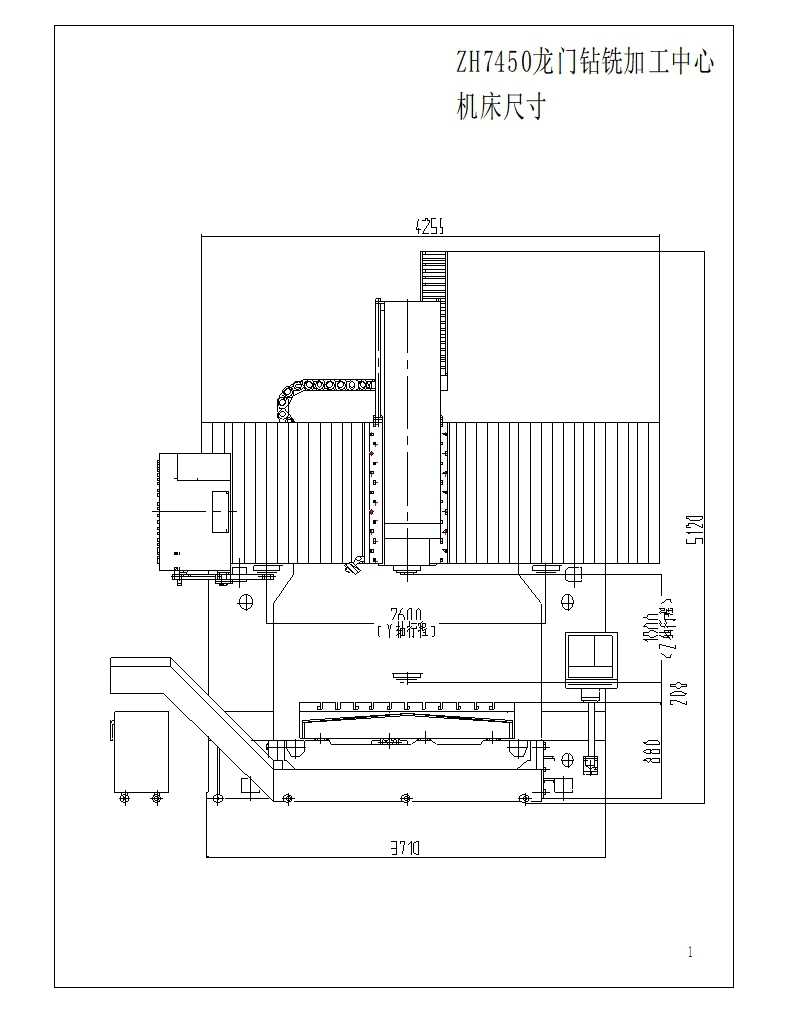 機床采用定梁雙立柱龍門式框架結(jié)構(gòu),工作臺在床身上作x向移動。滑鞍連同滑枕在橫梁上作y向移動,滑枕在滑鞍上作z向移動。三軸由交流伺服電機驅(qū)動,通同步帶傳動預(yù)拉伸結(jié)構(gòu)的滾珠絲杠,實現(xiàn)三軸的運動與定位。主軸傳動采用主軸交流伺服電機實現(xiàn)主軸無級變速。安裝在橫梁左側(cè)的盤式刀庫,實現(xiàn)刀庫與主軸上刀具的互換。床身兩側(cè)安裝有排屑裝置,自動的把鐵屑排出到機床外。