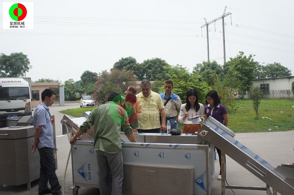 - 客戶(hù)來(lái)廠測(cè)試驗(yàn)貨果蔬清洗加工設(shè)備!