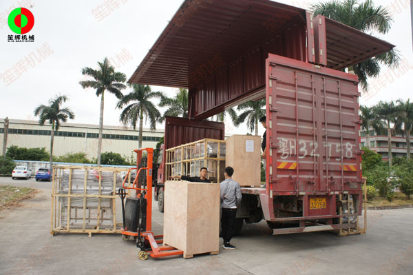 客戶訂購(gòu)的兩套渦流洗菜機(jī)及多臺(tái)出口海外的切菜機(jī)等設(shè)備同車(chē)中轉(zhuǎn)裝車(chē)發(fā)貨!