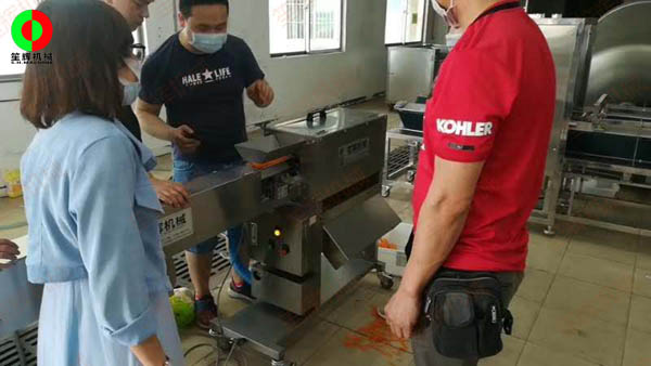 佛山客戶將多年老設(shè)備帶我司維修,并測試購買紅蘿卜削皮機!