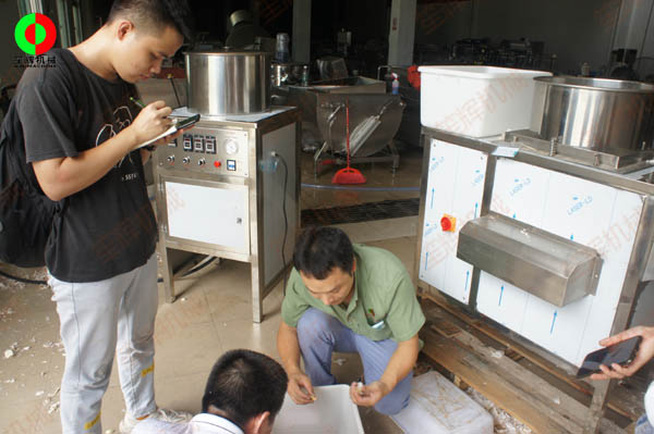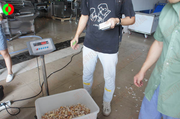 知名企業(yè)客戶考察公司現(xiàn)場,并測試大蒜加工生產(chǎn)設(shè)備!某知名企業(yè)派遣人員到我司進行考察,測試大蒜加工生產(chǎn)設(shè)備??蛻魧Υ笏獾募庸どa(chǎn)中,需要對大蒜進行分瓣與脫皮實現(xiàn)機械化流水性生產(chǎn),以減少對人力勞作的依賴,并增加產(chǎn)能!客戶技術(shù)人員對設(shè)備的各項指標(biāo)進行了認真細致的考察.