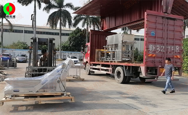大型連續(xù)盒式真空包裝封口生產(chǎn)設(shè)備出貨交付客戶!