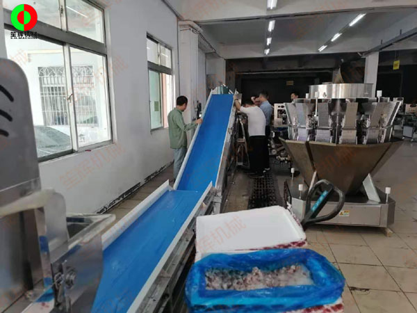 客戶一行幾人親臨我司現(xiàn)場考察,并帶來大批物料測試排骨的切丁和清洗、到清洗完畢后進行連續(xù)式脫水等的生產(chǎn)工藝流程!笙輝機械專注于肉類、水產(chǎn)、果蔬類等食品前處理加工機械的研發(fā)生產(chǎn)、制造,滿足客戶各類中*央廚房生產(chǎn)線非標工程定制實施!
