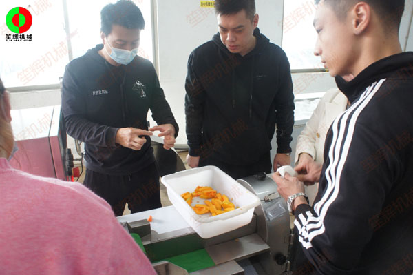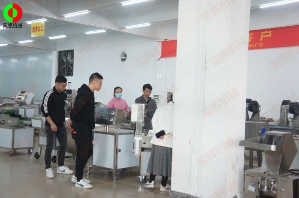 客戶現(xiàn)場了解瓜果分瓣及切割設備,最后現(xiàn)場簽定合同交付定金!笙輝機械專注于肉類、水產、果蔬類等食品前處理加工機械的研發(fā)生產、制造,滿足客戶各類中*央廚房生產線非標工程定制實施!
