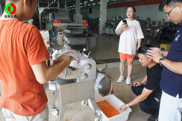 瓜果三維切丁機(jī)測試效果滿意,客戶付款購買隨車運(yùn)走!