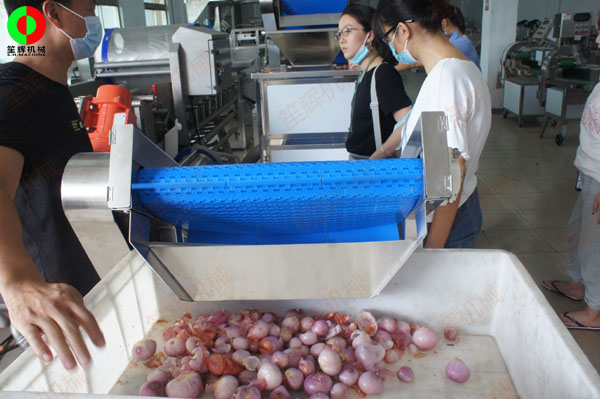 廣東惠州客戶王小姐親臨我司測試小洋蔥脫皮及打碎設(shè)備!我司洋蔥脫皮機(jī)運(yùn)用壓縮空氣作為動(dòng)力源,整個(gè)工作過程采用不用泡水,不用刀削,不磨損設(shè)計(jì),通過氣流進(jìn)行干式脫皮,確保洋蔥的完整度,適合蔬菜加工廠使用。