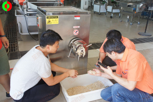 凍肉絞肉機(jī)嘗試處理牛筋,客戶(hù)滿(mǎn)意物料加工效果!