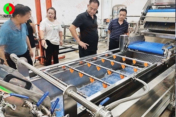 客戶來廠測(cè)試驗(yàn)貨果蔬清洗加工設(shè)備!