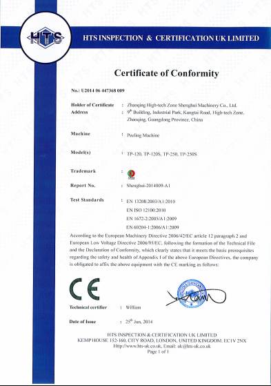 瓜果削皮機(jī)獲得CE認(rèn)證