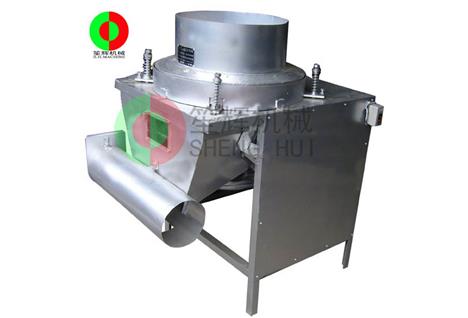 - 產(chǎn)品優(yōu)勢(shì): 本機(jī)利用料斗內(nèi)上下厚平面橡膠板之間搓揉來實(shí)現(xiàn)大蒜分瓣。進(jìn)料量越多或蒜頭較大時(shí),上膠板克服彈簧力自動(dòng)抬起,自動(dòng)破瓣。借助離心力作用,蒜瓣向間隙小的邊緣移動(dòng),流入出料口。出料口裝有鼓風(fēng)機(jī)的吹風(fēng)管,將蒜皮等雜物分離。
