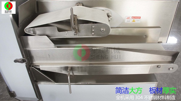 - 產品優(yōu)勢: 本SH-200加大型切菜機,可切葉菜類,如長蔥,蒜苗,韭菜,芹菜,白菜,青菜等,也可切條狀瓜果,如蘿卜,黃瓜,辣椒,茄子,等等??汕衅ê癖《瓤捎喿觯?,切段切條(長短度可調)。輸送帶速度和轉刀速度采用變頻器可調,可單獨控制。一機多用,輸送帶加寬到200mm,產量更高,適度更廣。皮帶拆卸和安裝都很快捷方便,機器清洗和保養(yǎng)更容易。這種加大型切菜機適合大型食品加工廠,餐飲行業(yè),飯?zhí)?,餐飲配送中心使用?